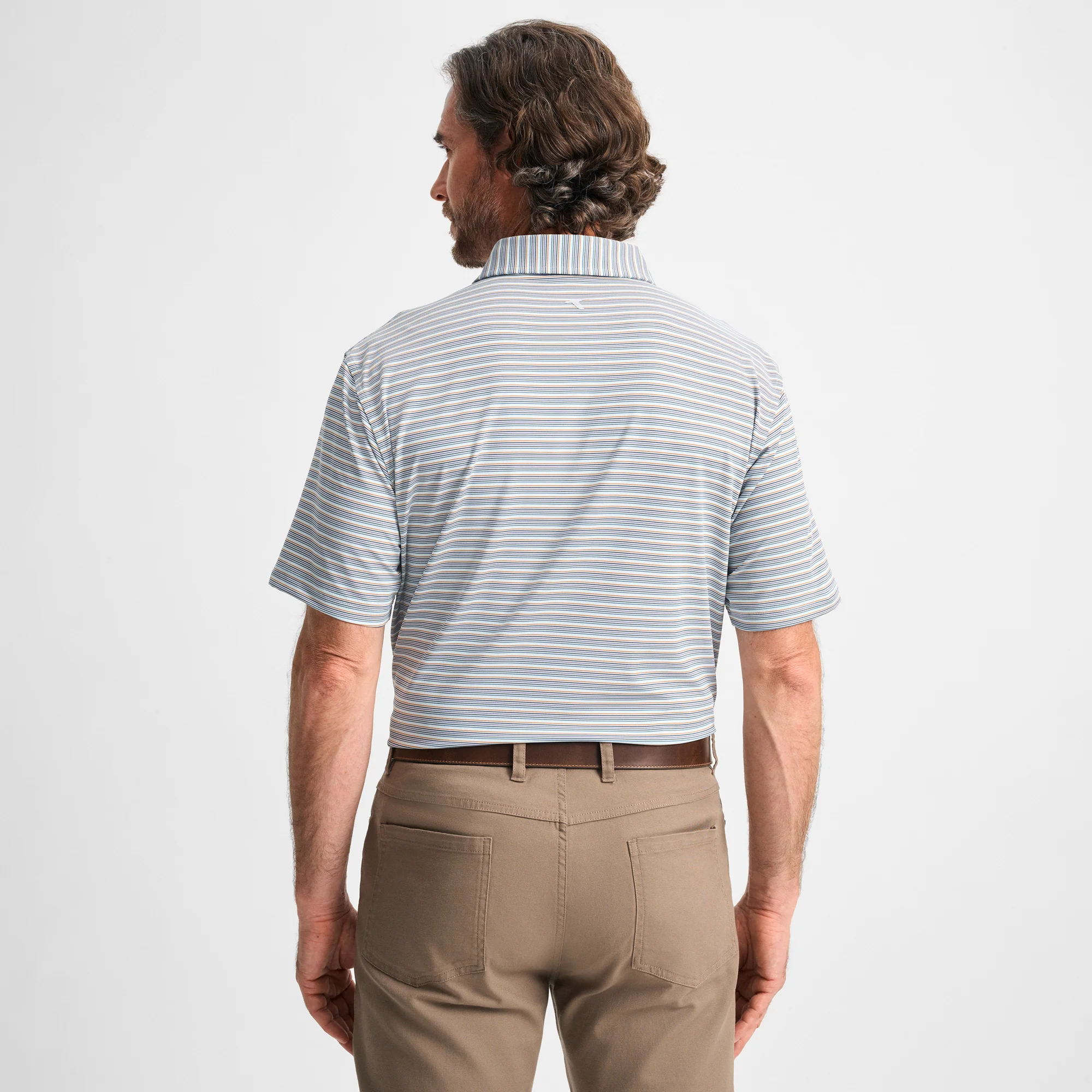 Our Multi Pinstripe Performance Polo is as classic as it gets. Crafted from a moisture-wicking, 4-way stretch fabric, this polo transitions effortlessly from office to oasis. Sewn-in permanent collar stays will keep it looking crisp for years to come