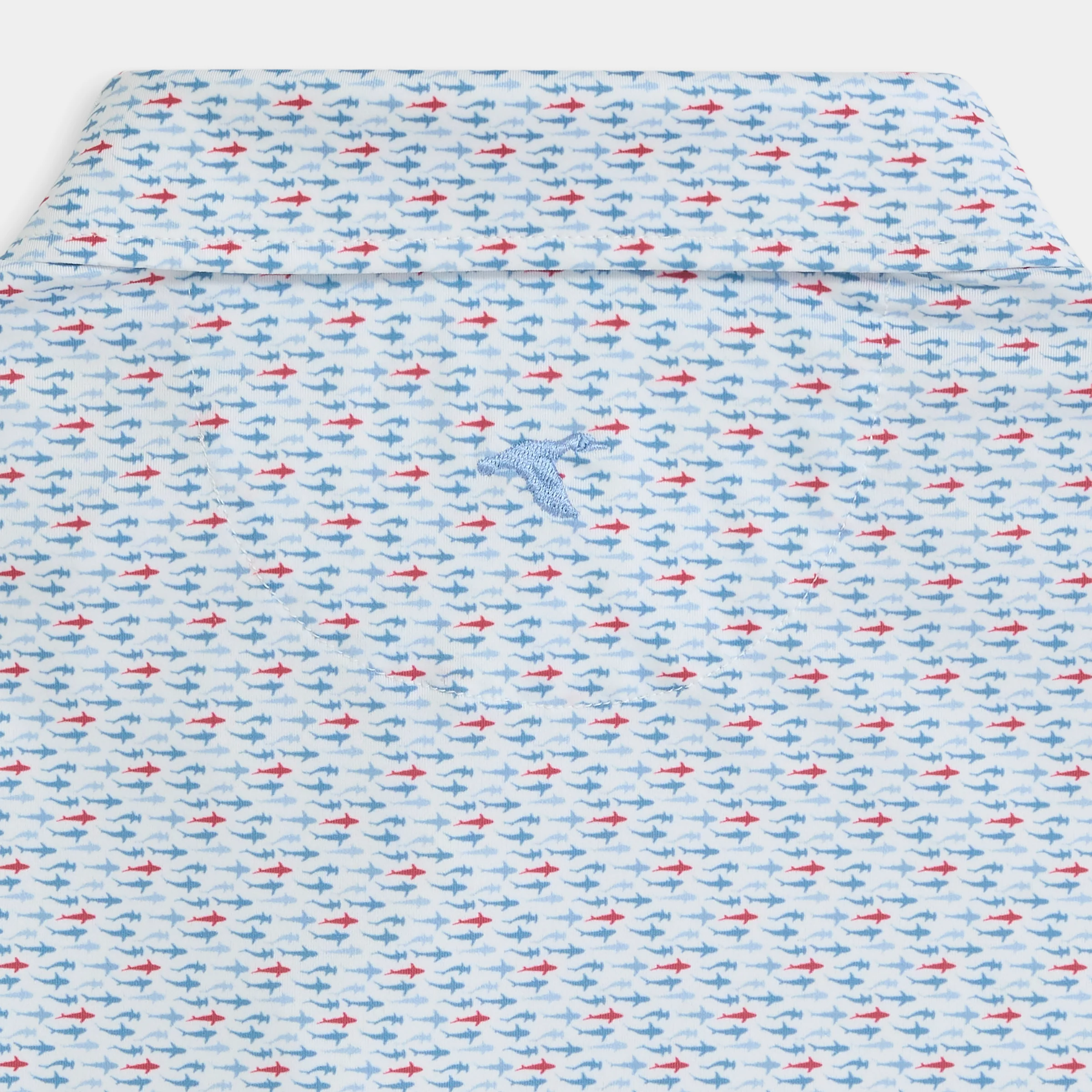 The Fin Frenzy Printed Performance Polo features a subtle shark print. Designed in a classic fit with our signature printed performance fabric, it offers moisture-wicking comfort and easy stretch for all-day wear. Finished with classic logo buttons and sewn-in permanent collar stays for a polished, everyday look.